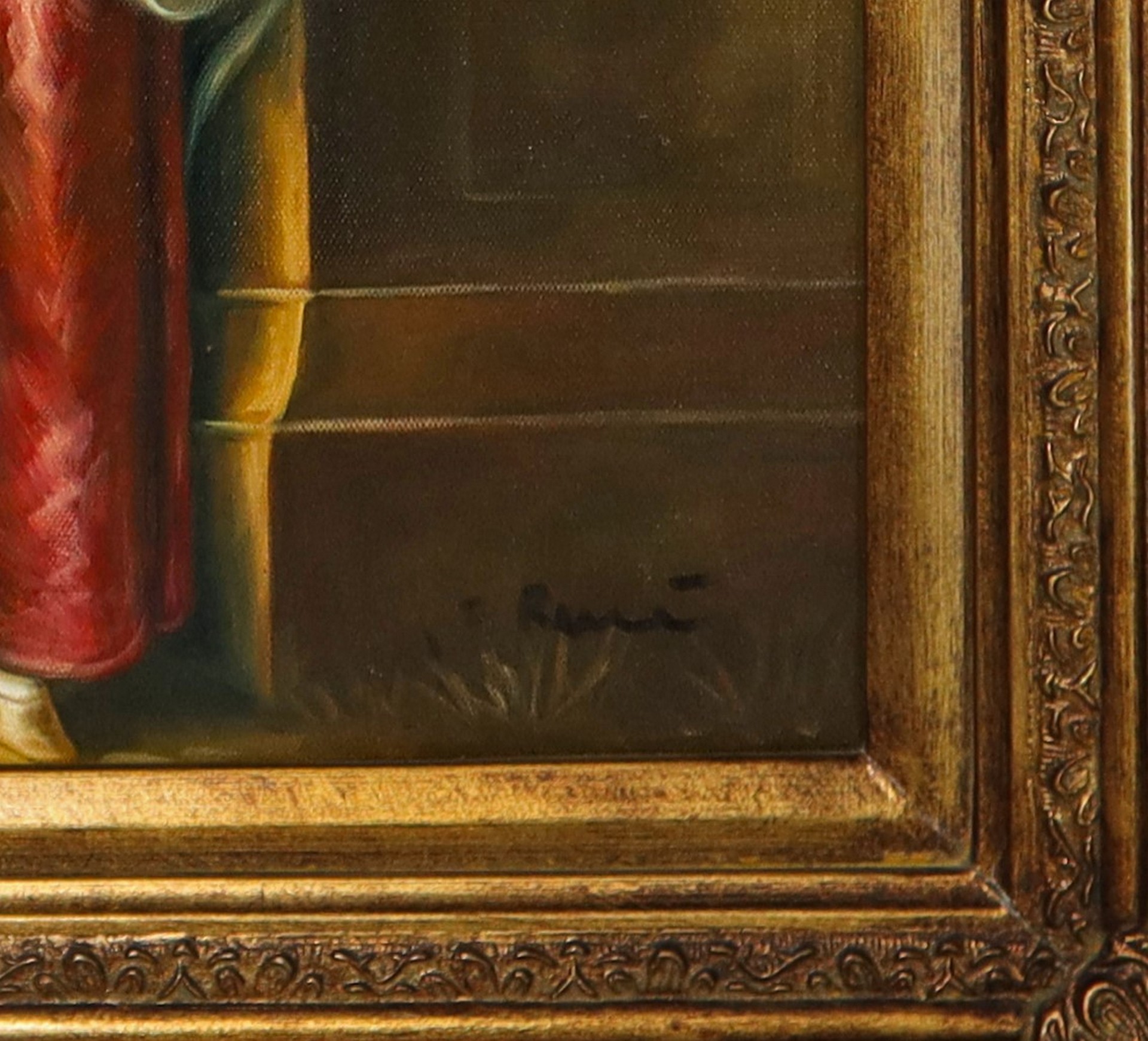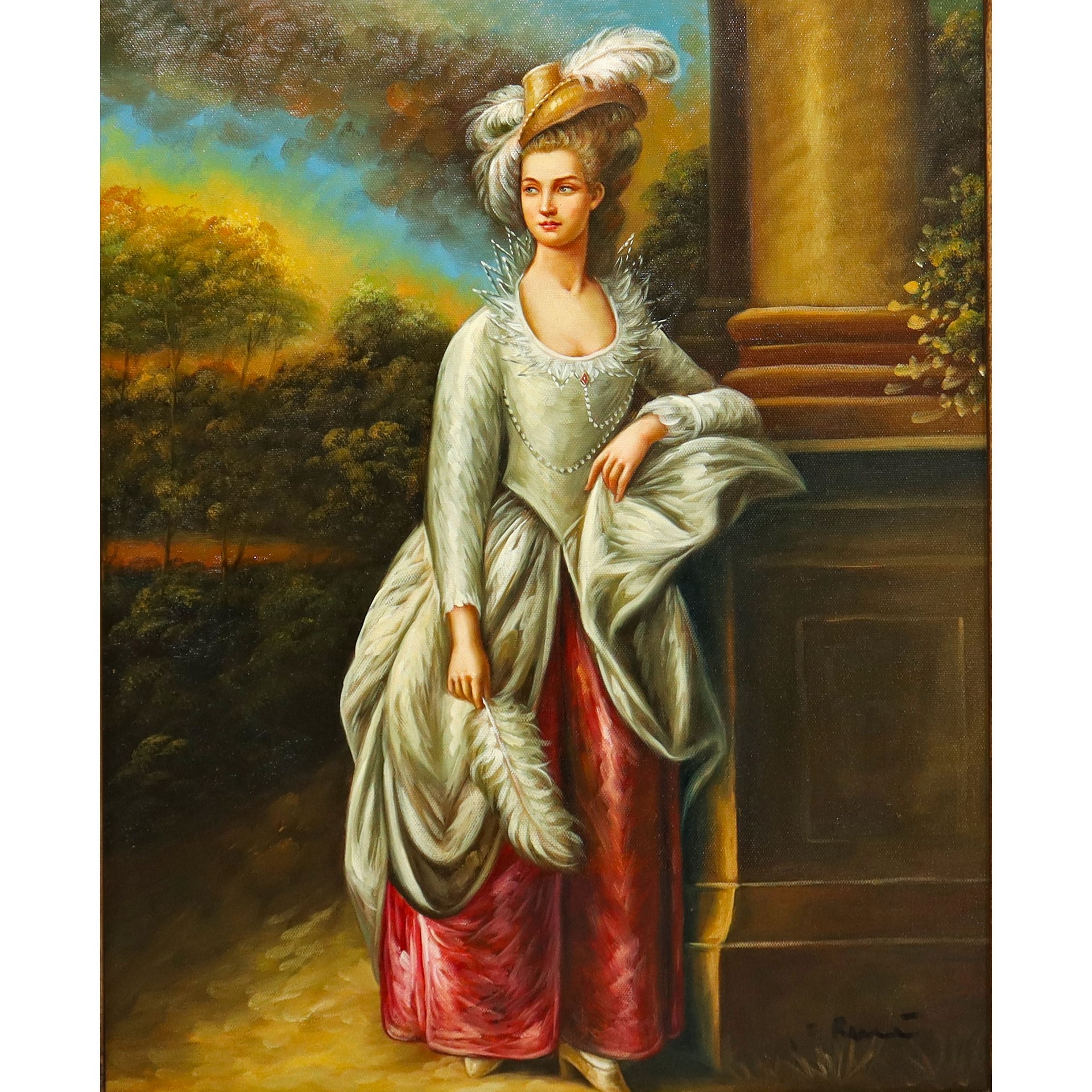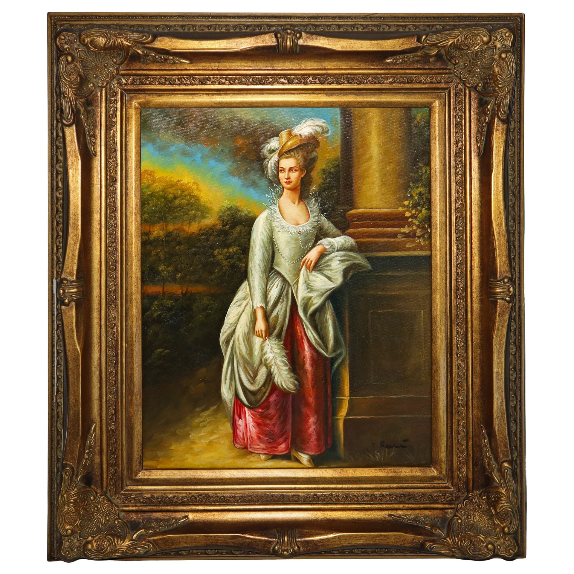 Ritratto di dama in cornice dorata decorata