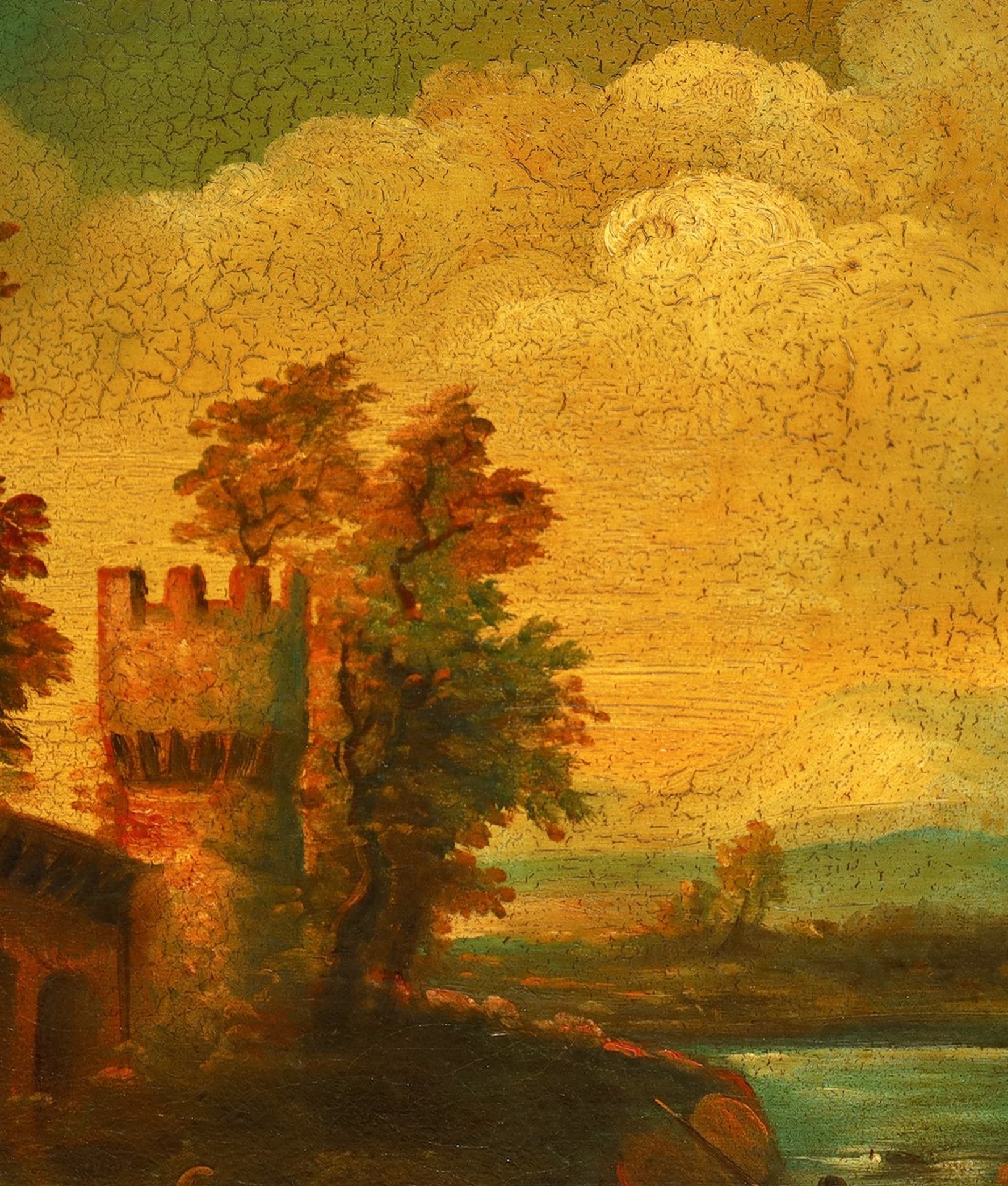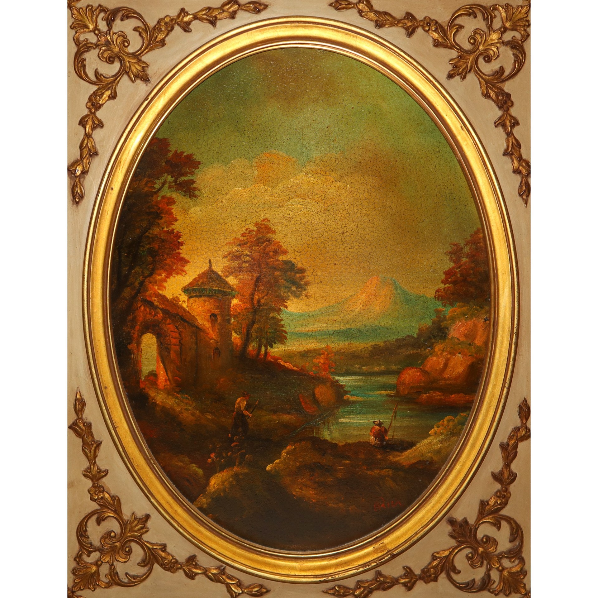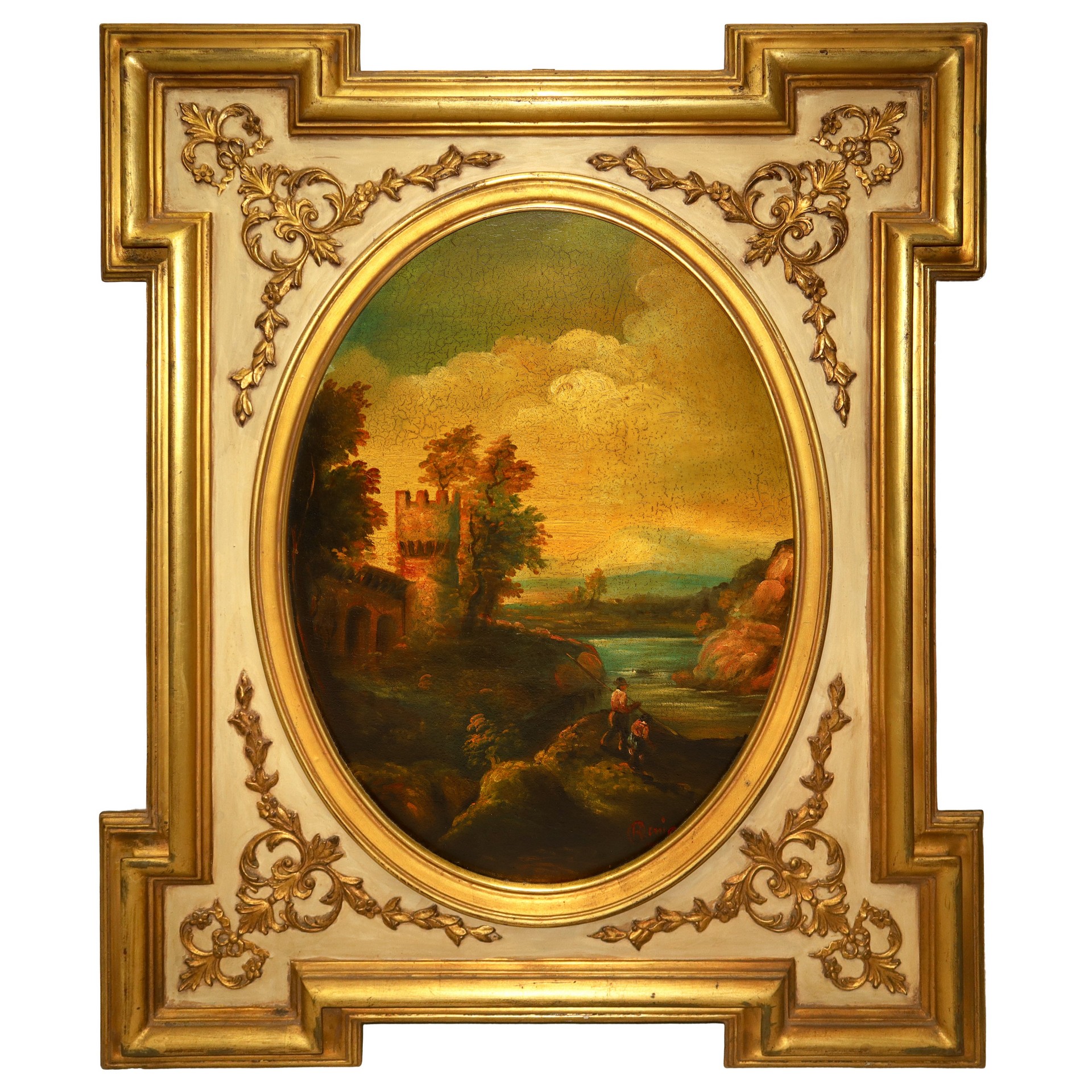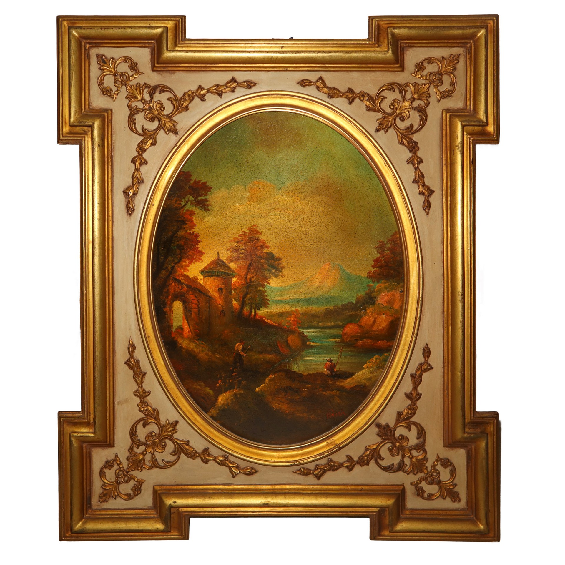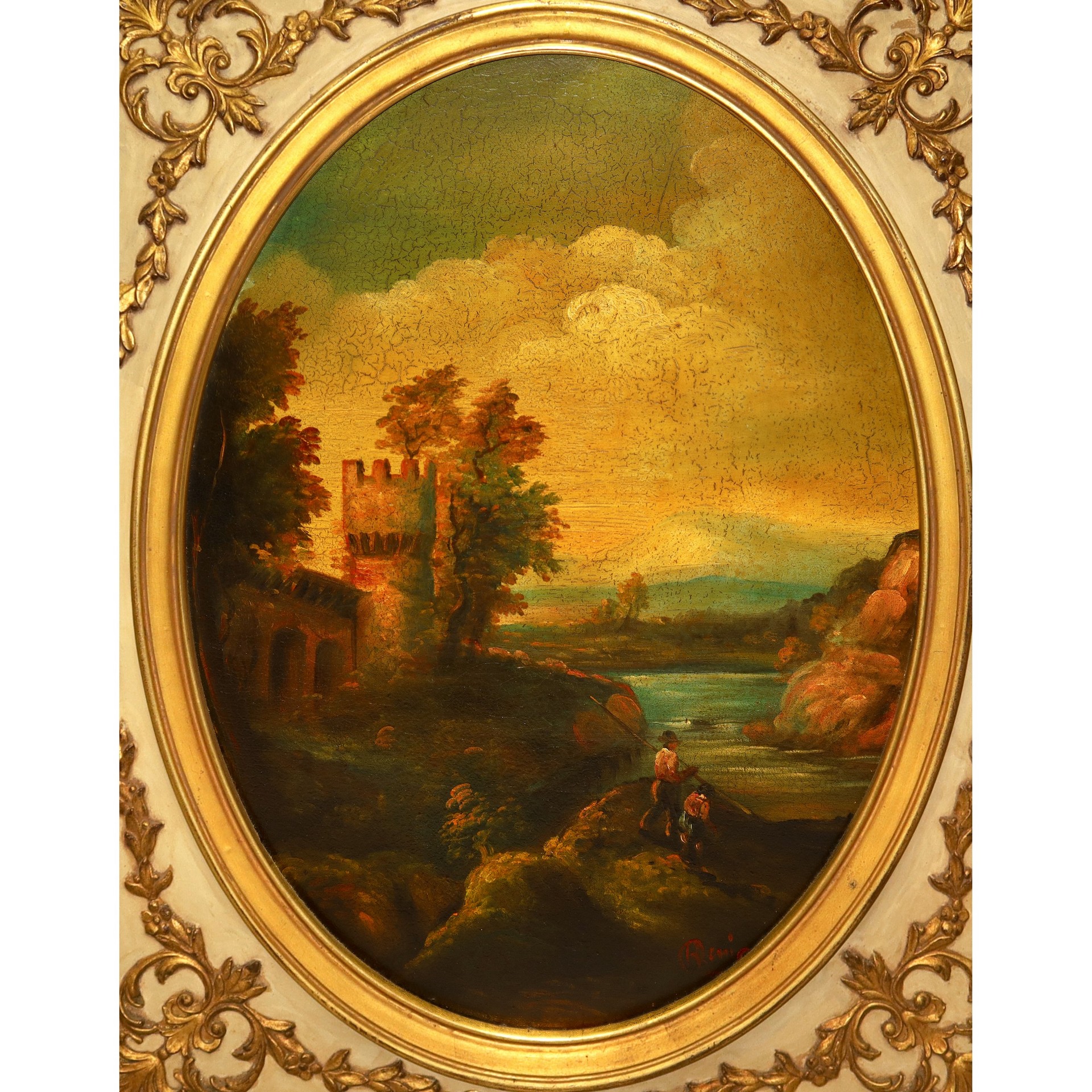 Corrado Risi (Svizzera 1932) - Coppia di paesaggi entro cornice dorata