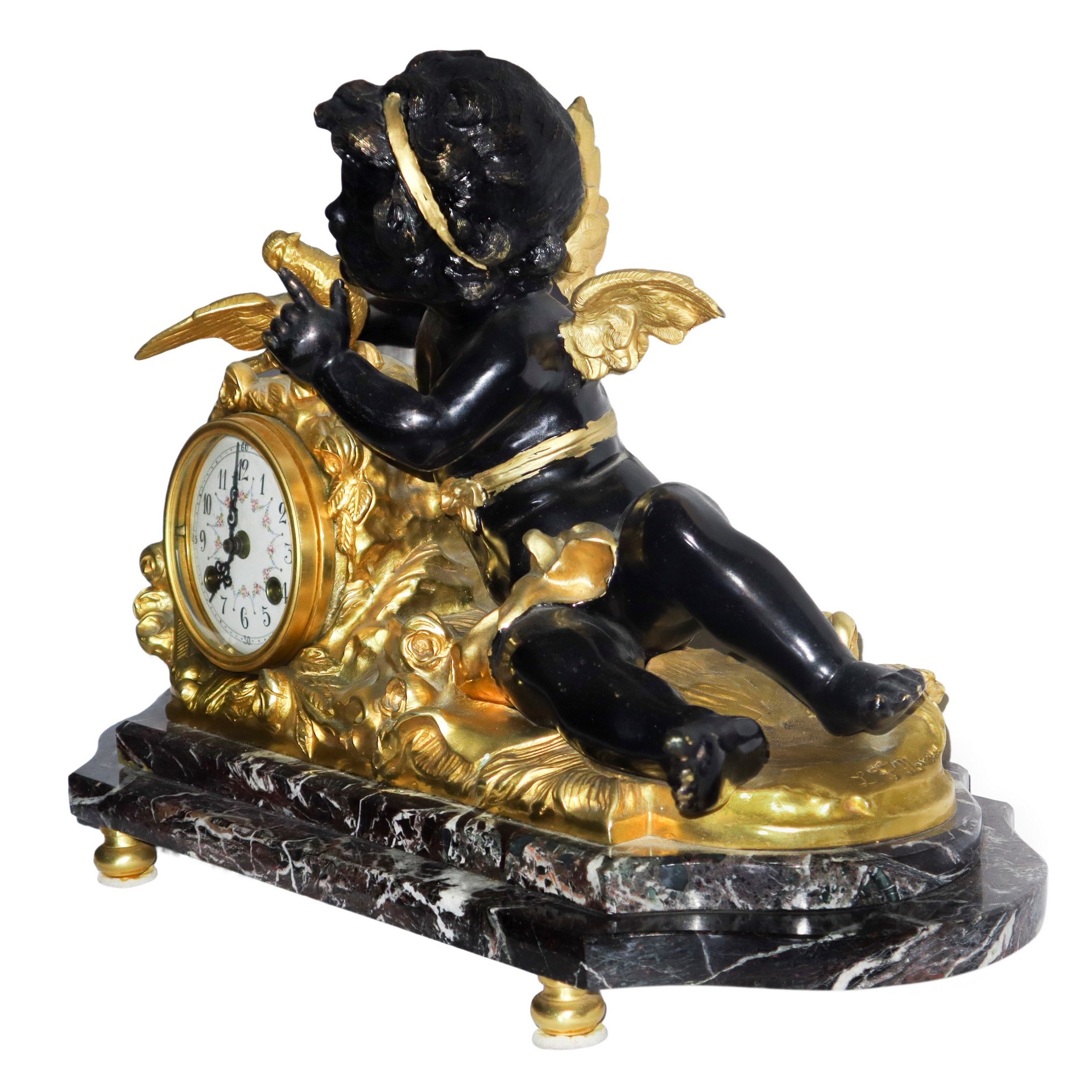 Orologio su piedistallo decorato con putto e uccellino h cm 37x54.5