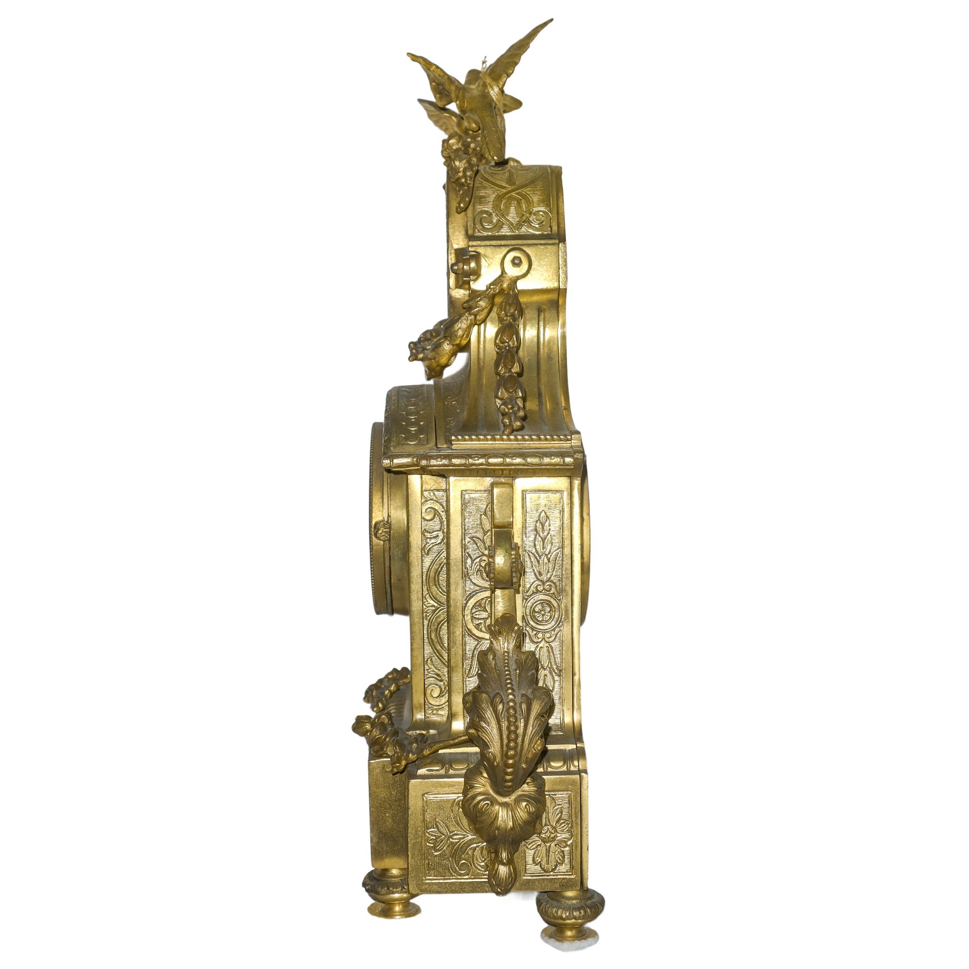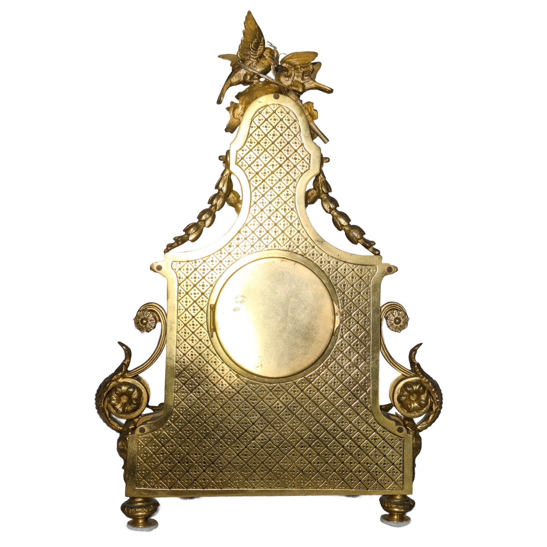 Orologio decorato con uccellini alla sommità e applicazioni in metallo con decori floreali