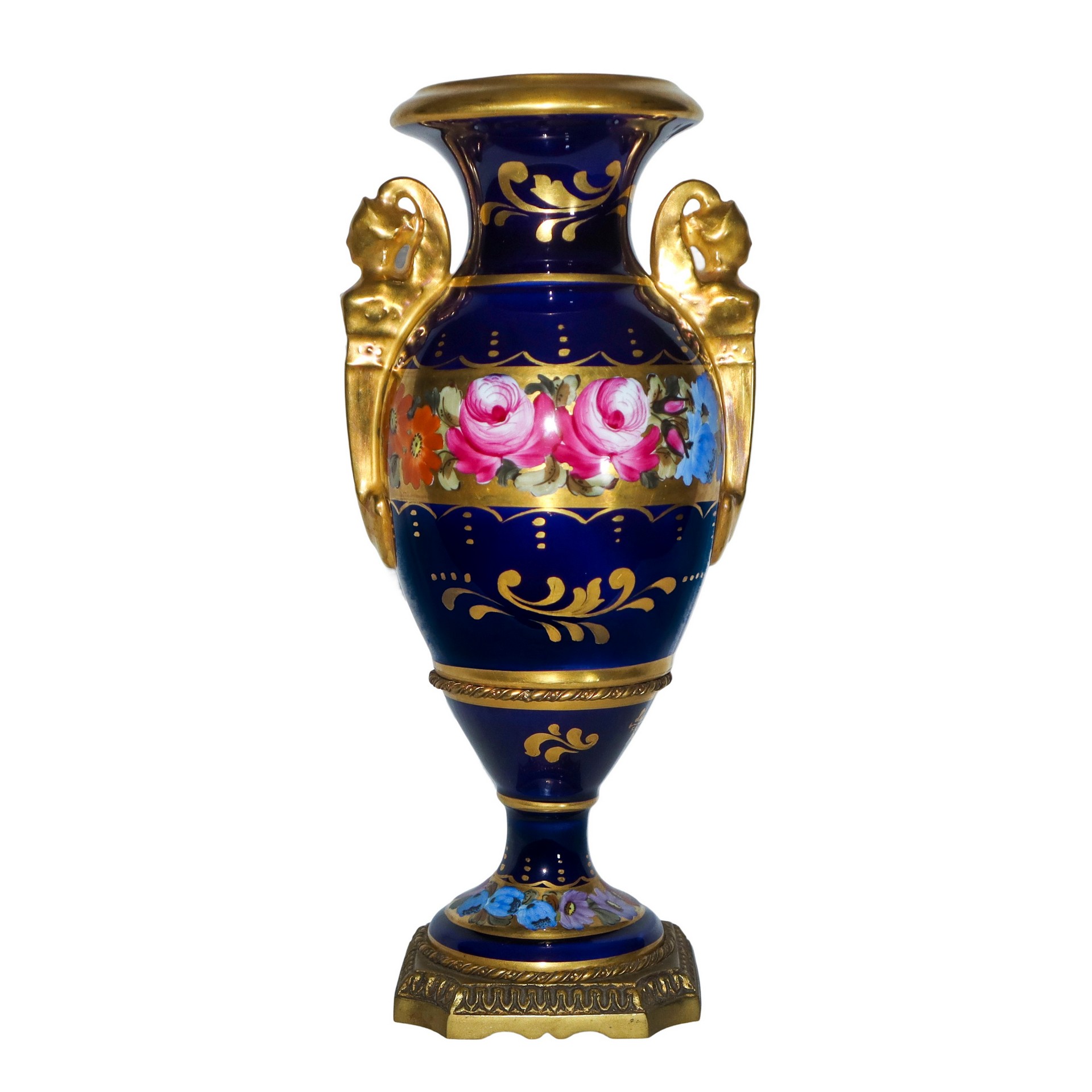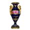 Vaso ad anfora blu con decori dorati e fiori h cm 31x14