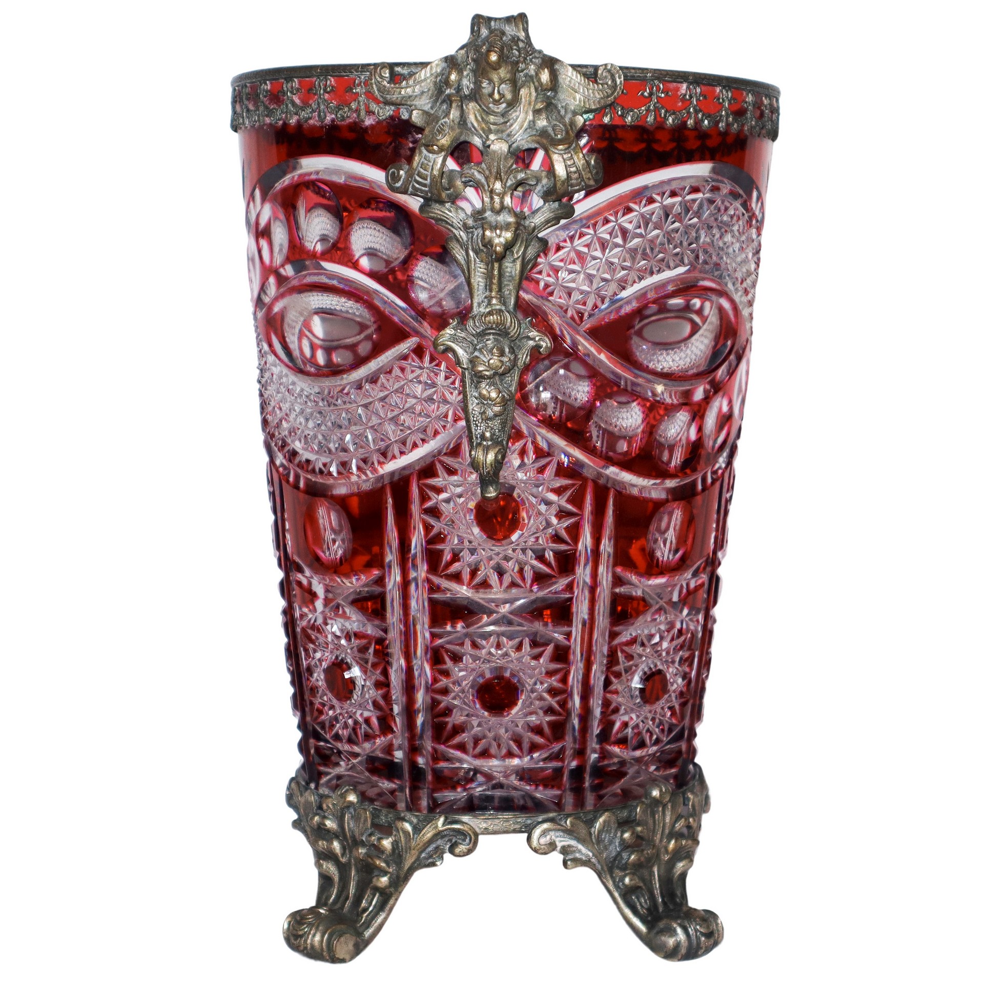 Vaso in vetro rosso con inserti in metallo h cm 31x24.5