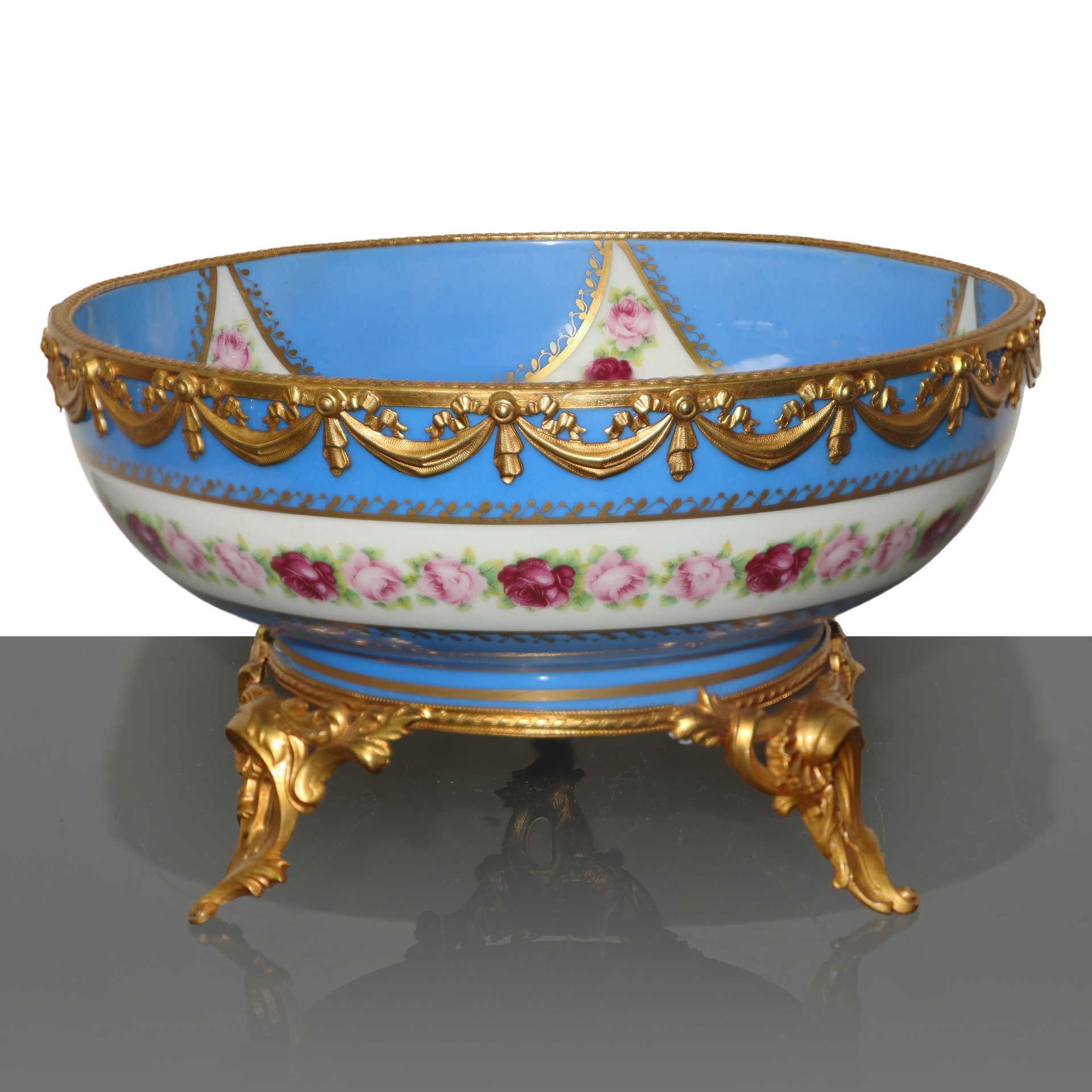 Lotto 188 | Alzatina centrotavola in stile Sèvres con decori floreali e applicazioni metalliche
