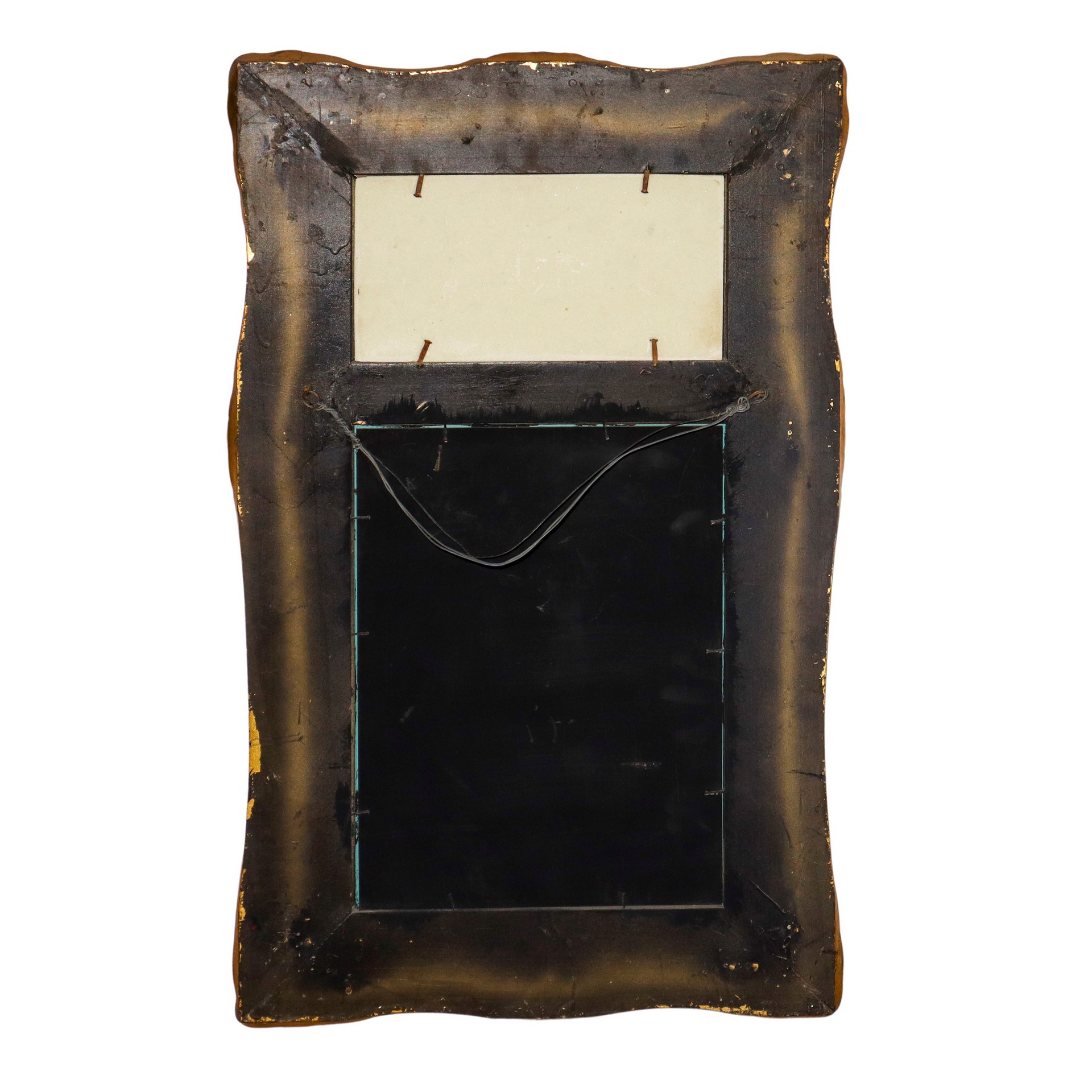 Specchiera entro cornice dorata con decori e bassorilievo neoclassico h cm 82x51