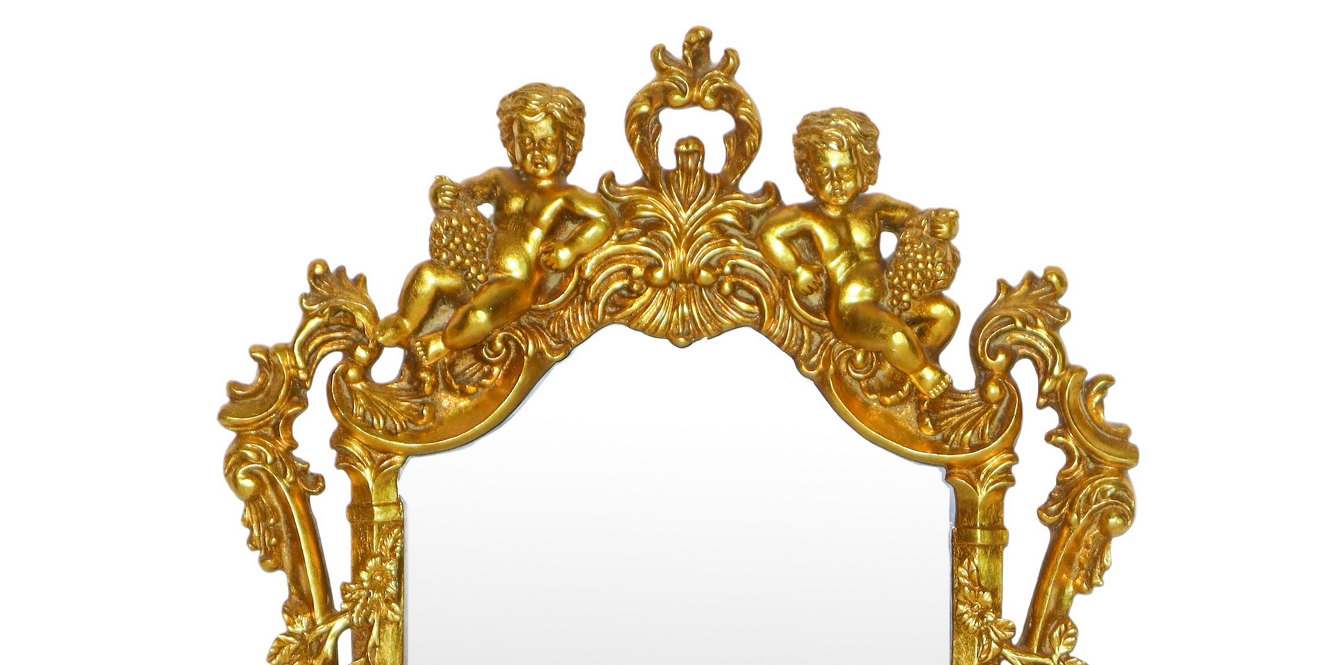 Lotto 204 | Specchiera sagomata entro cornice dorata riccamente decorata a traforo con due bacchini alla sommità