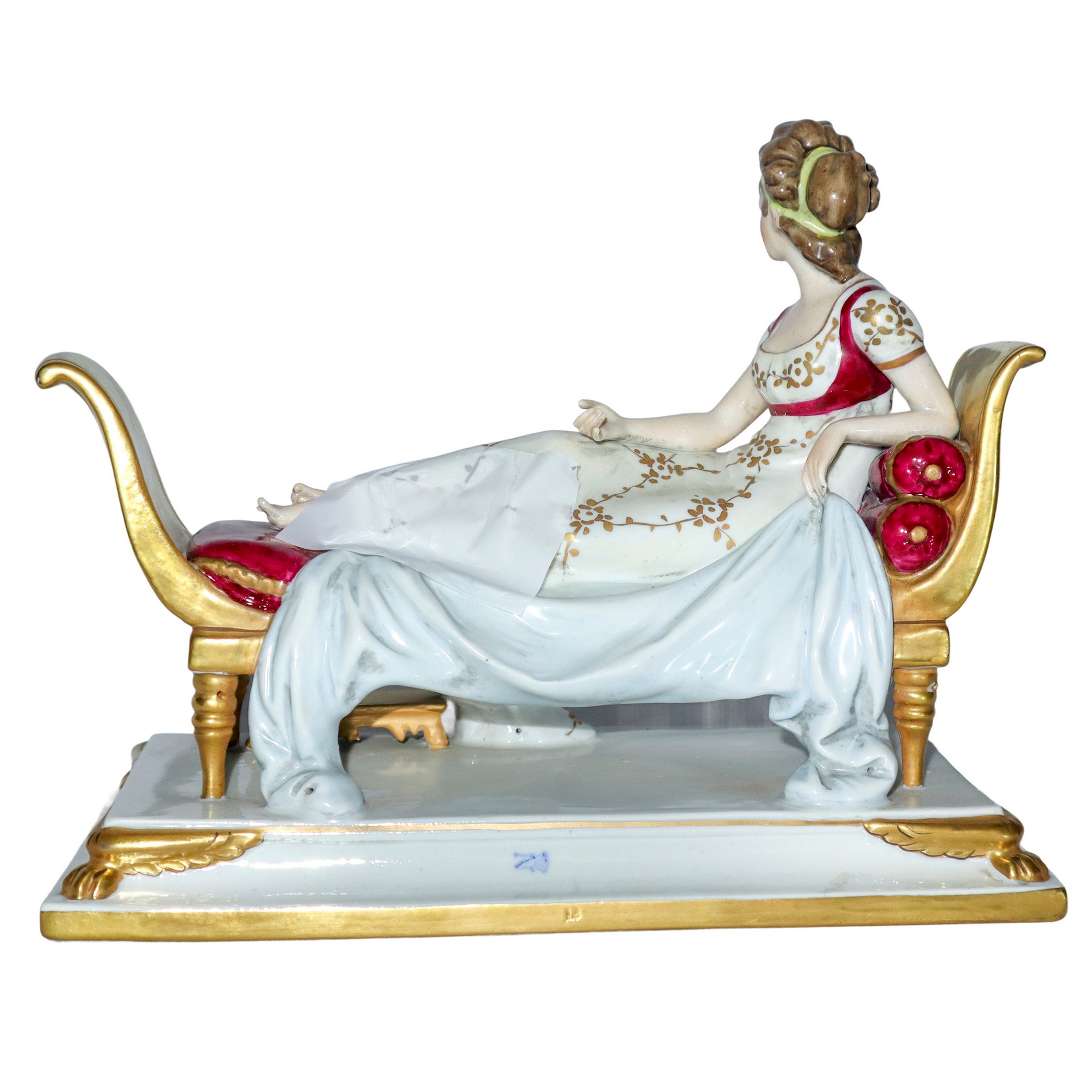 Statuetta di Paolina Bonaparte stesa su dormeuse h cm 19.5x24