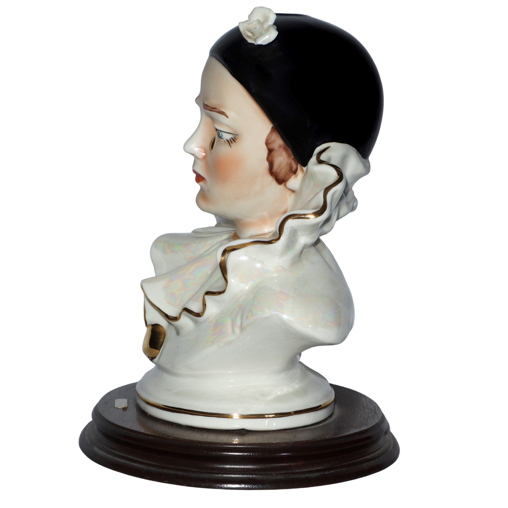Mezzobusto di Pierrot su base ovale in legno h cm 29x23.5x26.5