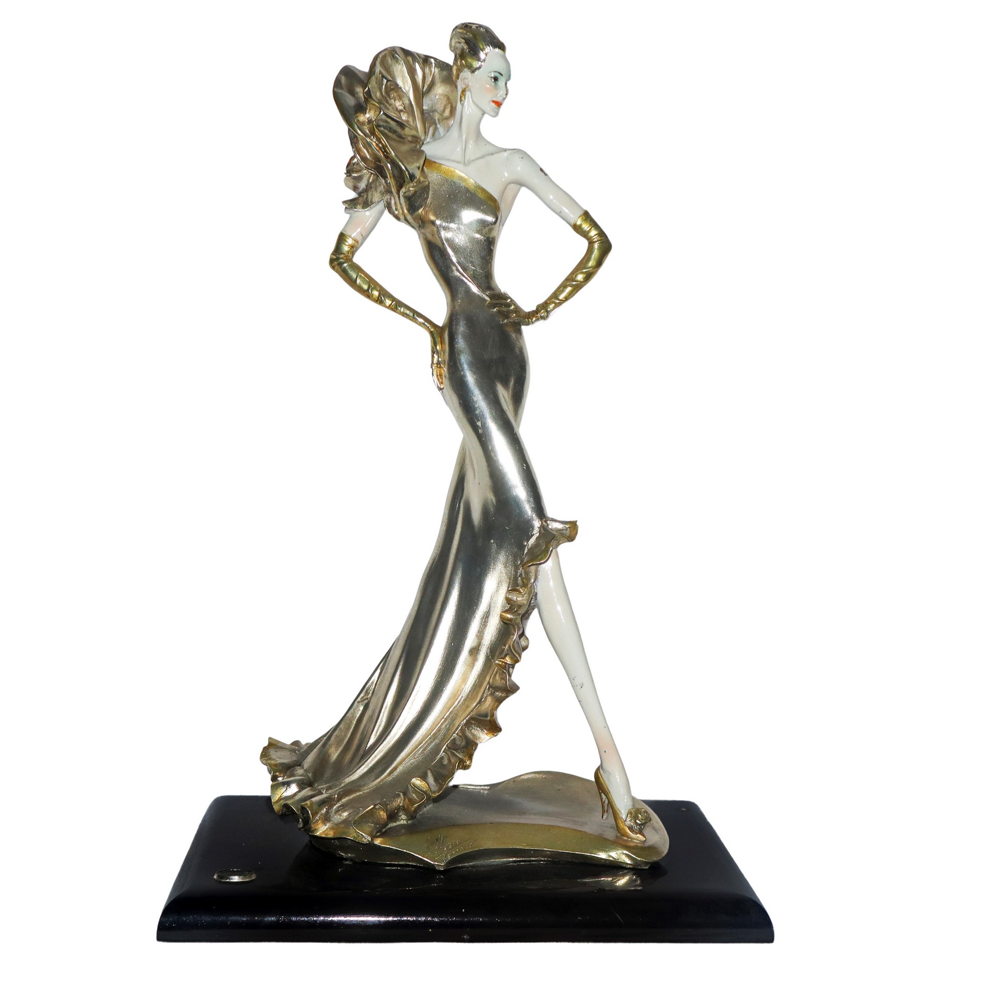 Lotto 231 | Donna in abito da sera argentato con guanti dorati su base rettangolare