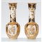 Coppia di vasi a tromba in ceramica smaltata e decorata raffiguranti "Scene di vita orientale" (usure).