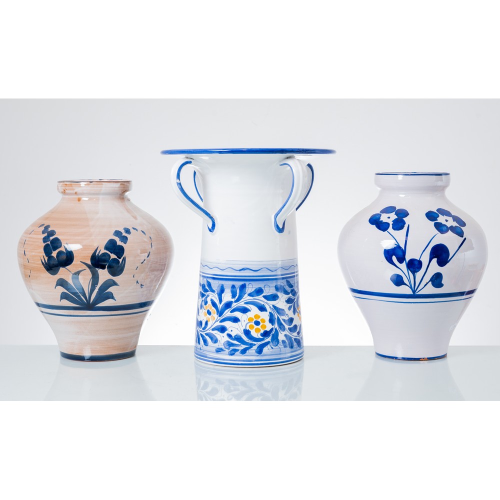 DUE VASI E CILINDRO in ceramica decorata.