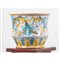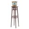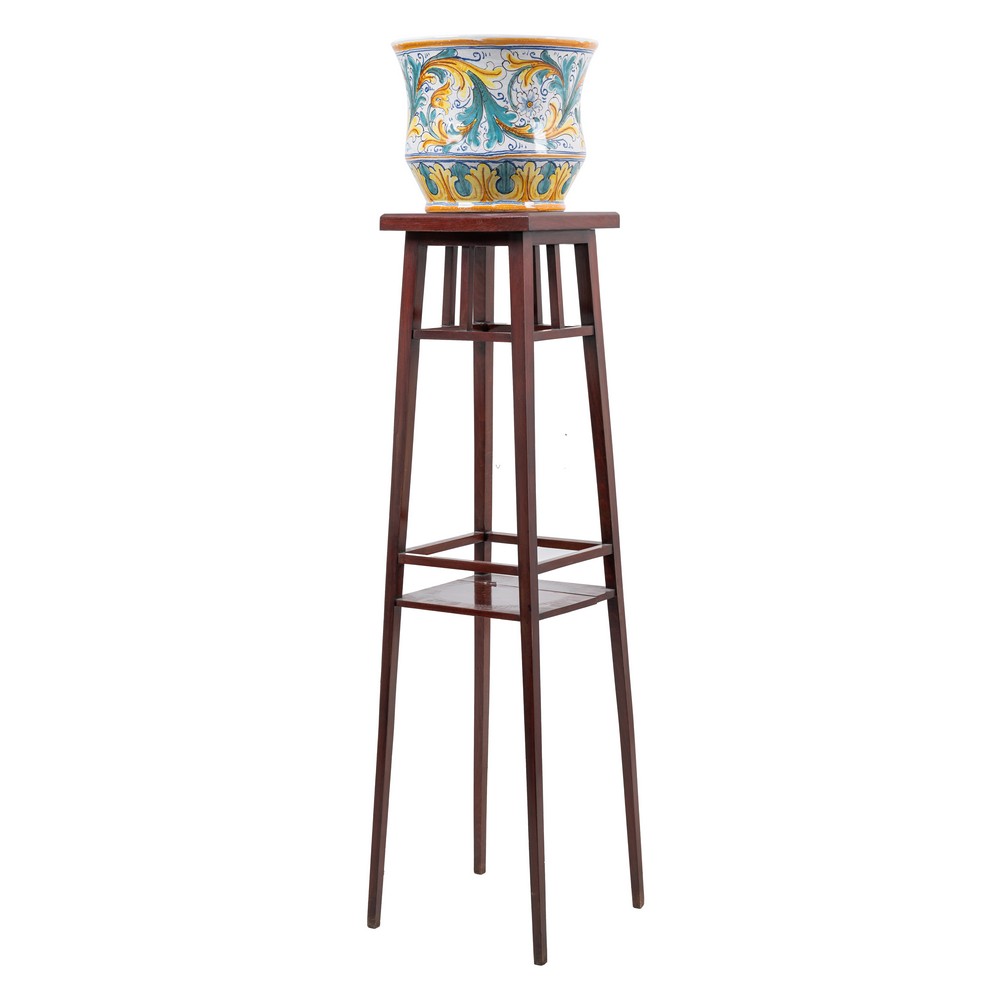 Cantone Liberty in legno di faggio con vaso in ceramica smaltata e decorata.