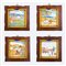 Quattro mattonelle in ceramica smaltata e decorata, applicate su pannello di legno raffiguranti "Quattro stagioni".