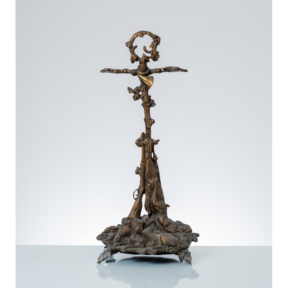 Portaombrelli in ghisa lavorata con disegni a motivo di caccia.