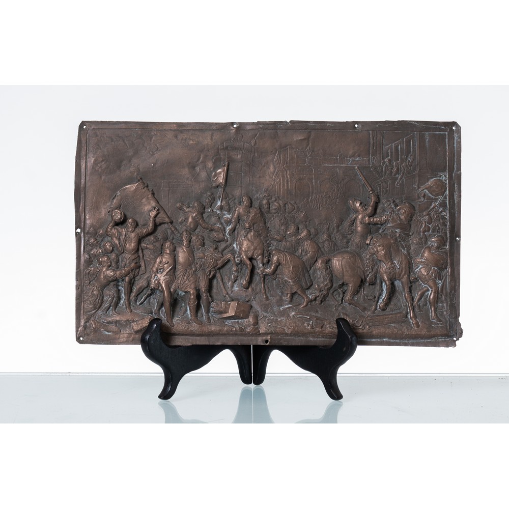 ALTORILIEVO in metallo raffigurante "Battaglia".