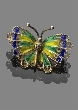 SPILLA Spilla in argento a forma di farfalla con smalti vari colori Butterfly shaped silver brooch with various enamel colors