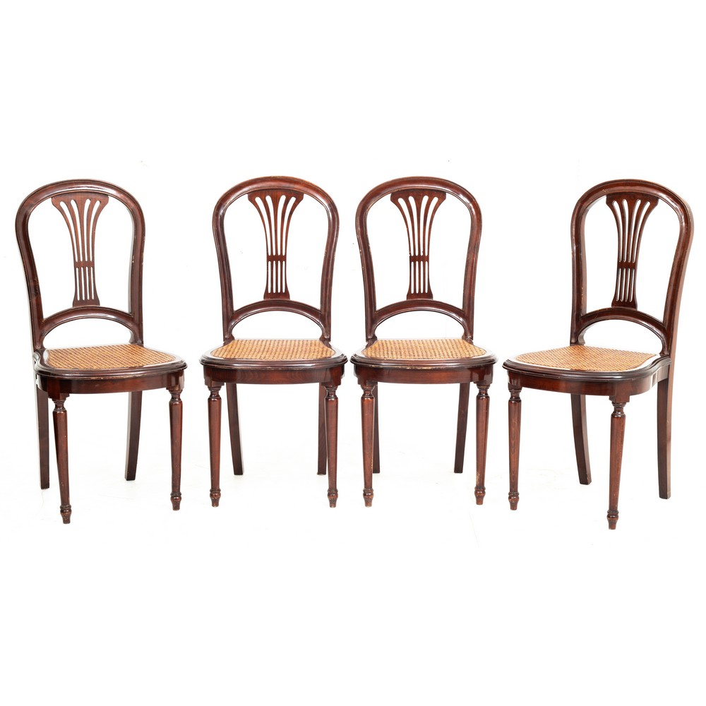 Quattro sedie in legno di mogano, sedute in finocchino.