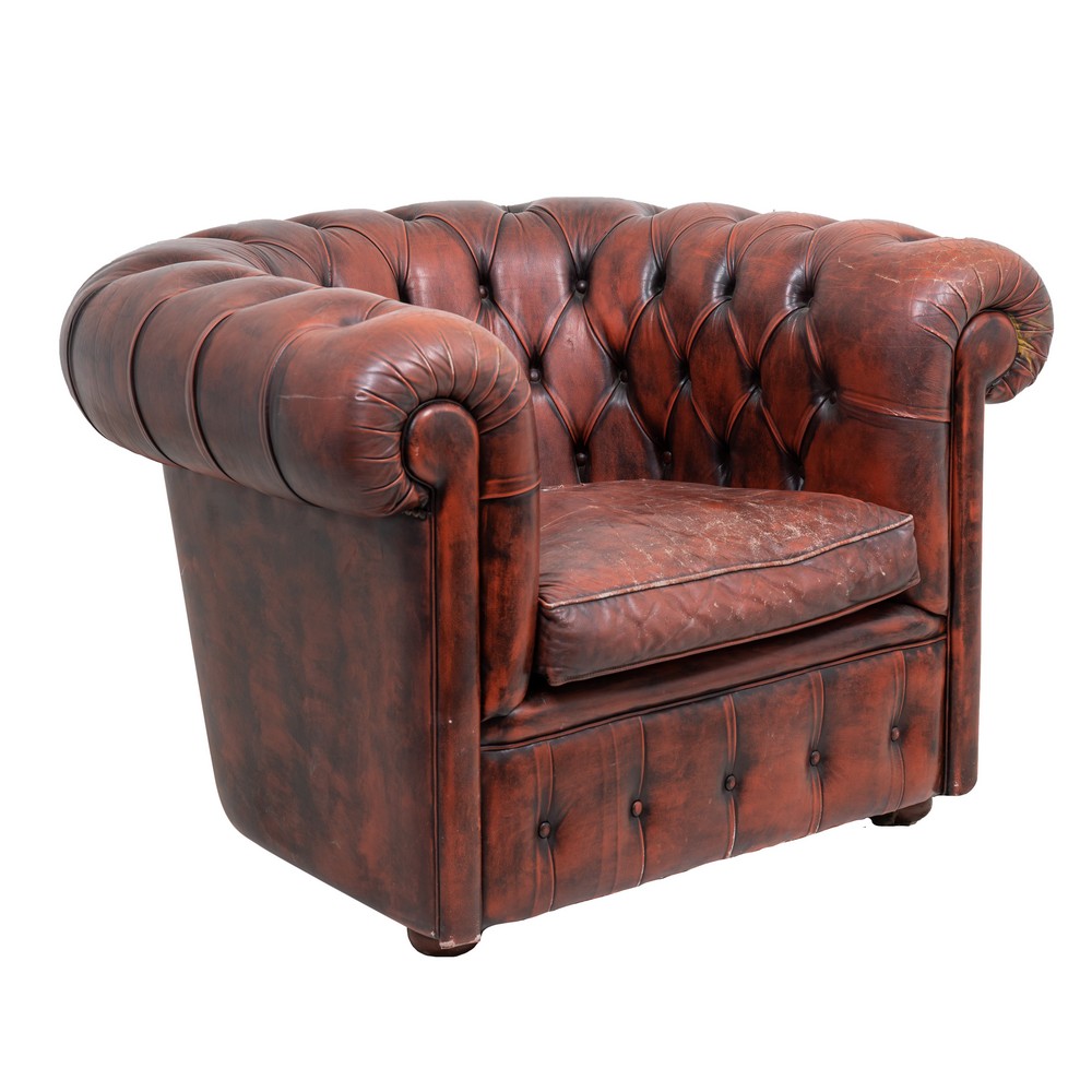 Poltrona tipologia Chesterfield in ecopelle (usure).