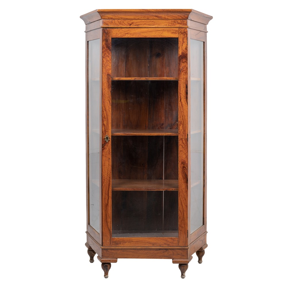 Vetrina ad un'anta a vetro in legno di ulivo.