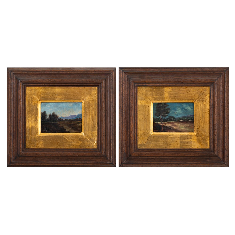 PITTORE DEL XX SECOLO, Paesaggi, Coppia di oli su tavoletta