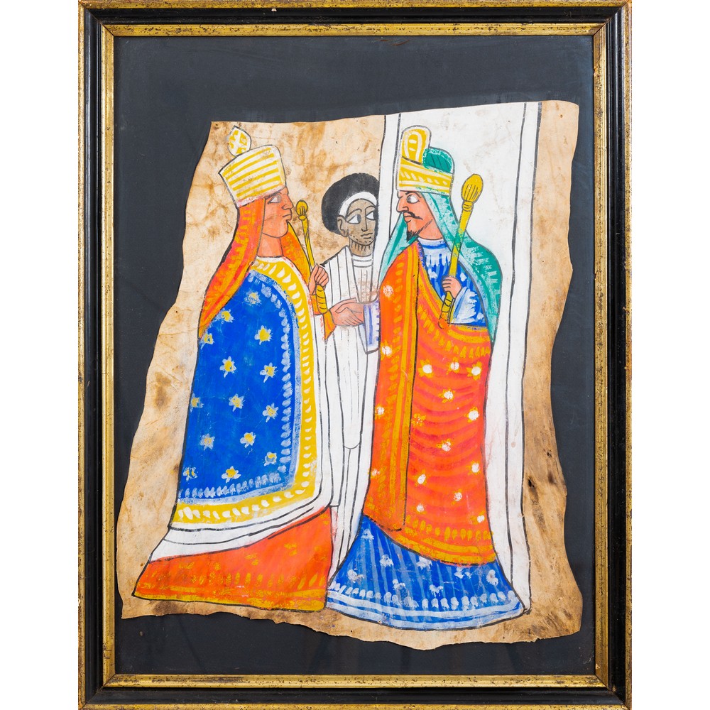 PITTORE ETIOPE DEL XX SECOLO, Pittura su pelle di pecora