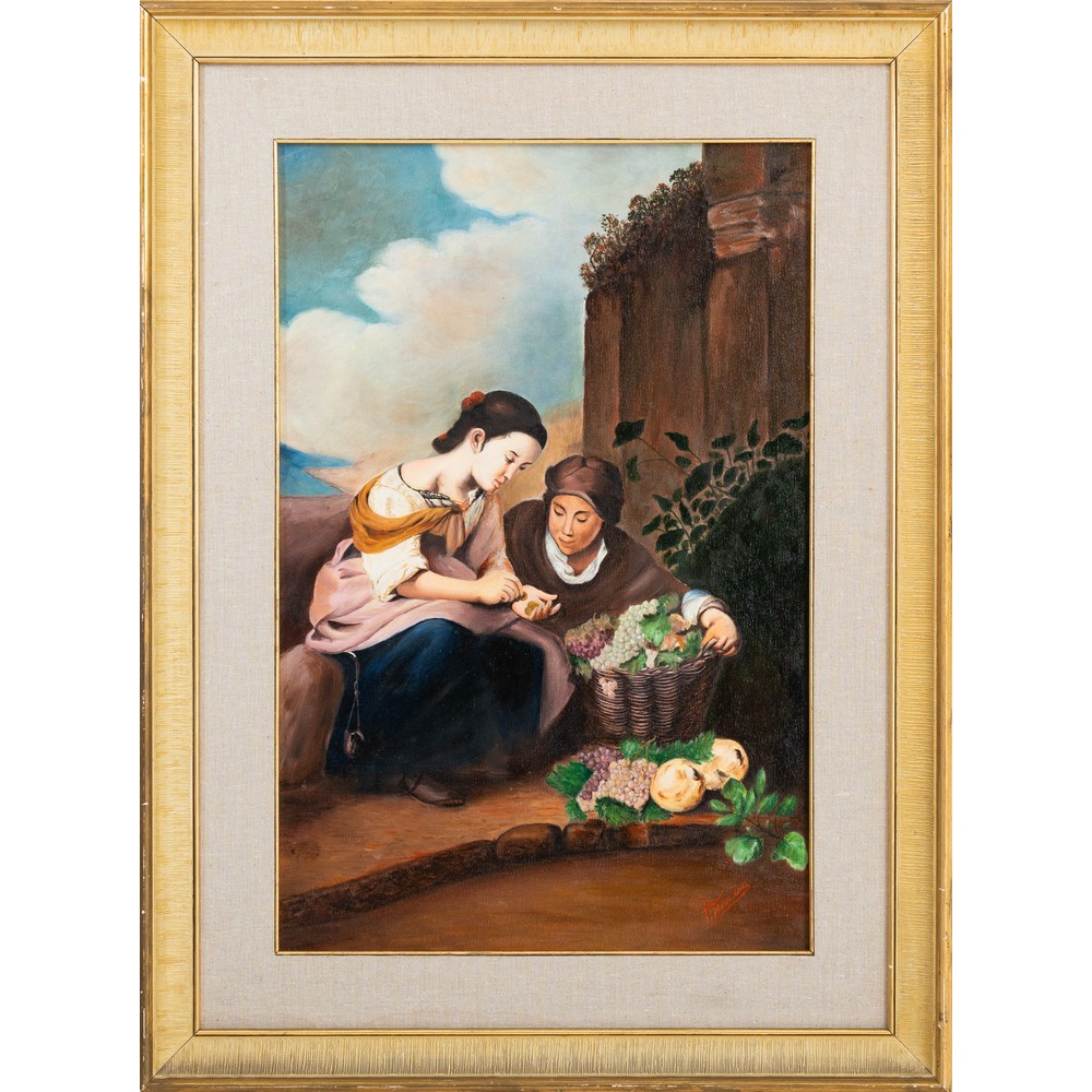 PITTORE DEL XX SECOLO, Venditrici di frutta, Olio su tela