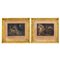 Coppia di cornici in legno dorato ad argento e mistura con all'interno incisioni ritoccate a mano raffiguranti "Prise de Chateau" e "Ivanhoe Blesse".