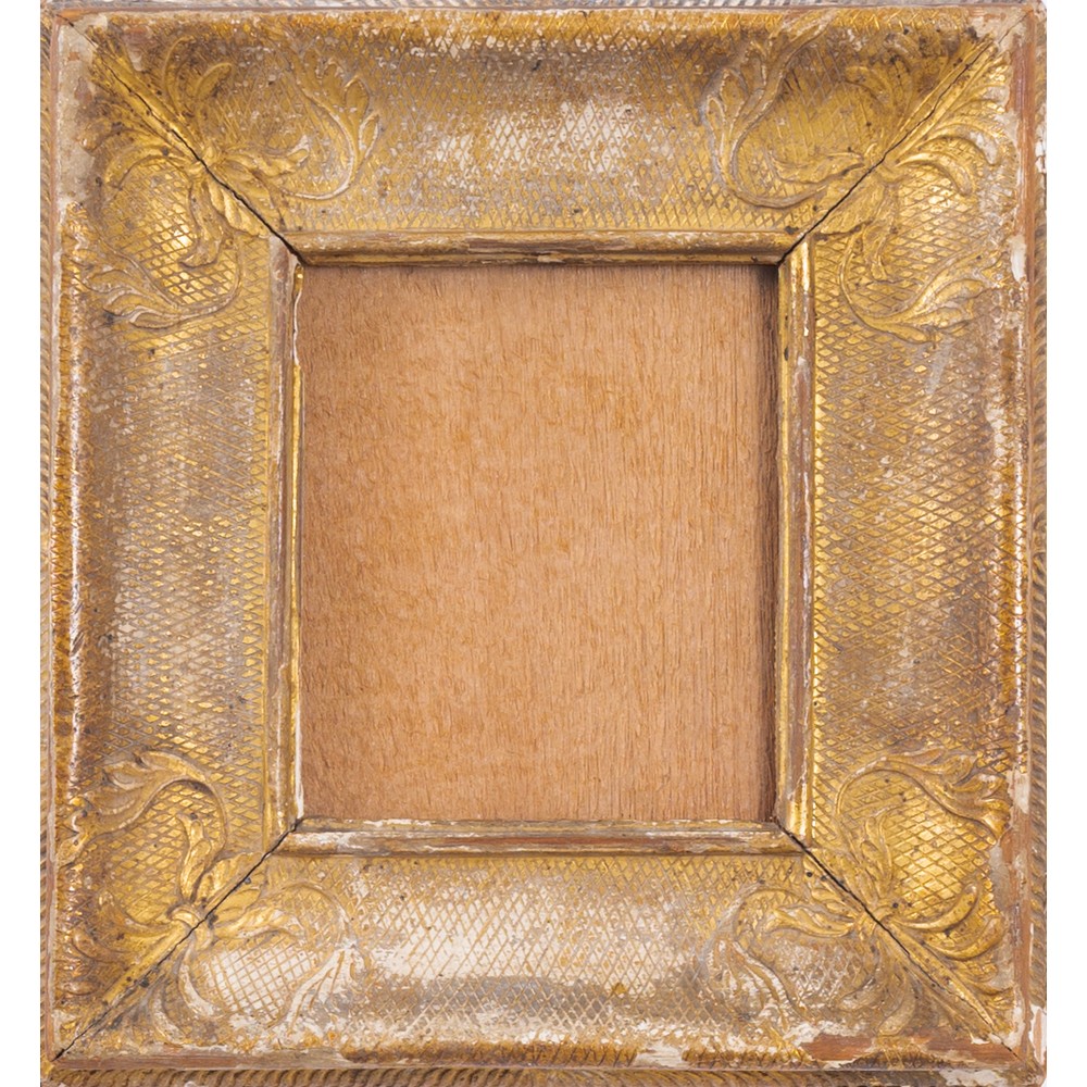 Piccola cornice a guantiera con doratura ad oro zecchino.