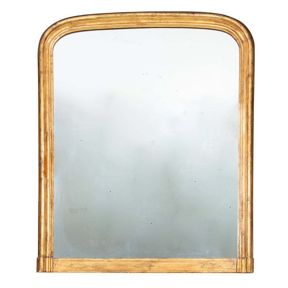 Specchiera in legno dorato ad oro zecchino, parte superiore ovalizzata.