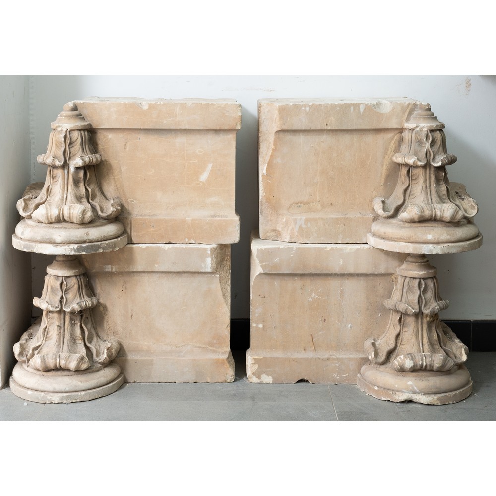 Quattro elementi architettonici in pietra bianca stile neogotico.