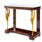 Consolle stile Impero in legno di mogano, piedi a forma di cigni in legno dorato, piano in marmo bianco venato.