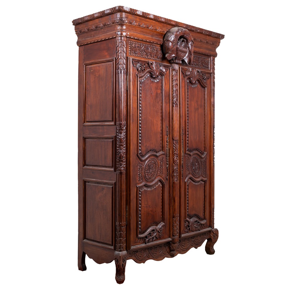 Armadio a due ante in legno di mogano riccamente scolpito.