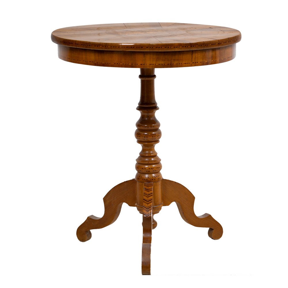 Tavolino tipologia Sorrentino in legno di noce, perfili e tarsie in bosso.