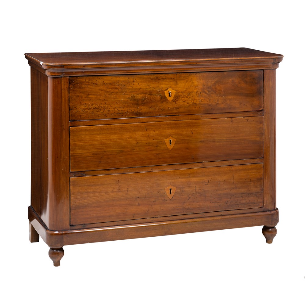 Cassettone Luigi Filippo a tre cassetti in legno di noce.