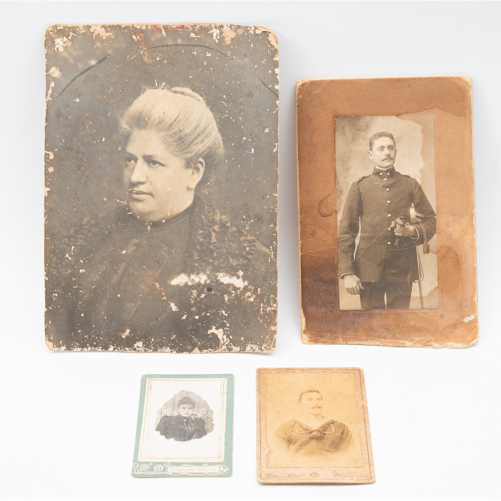 QUATTRO FOTOGRAFIE DELLA FINE DEL XIX SECOLO. Le fotografie sono dei fotografi: Ulisse D’Antoni di Napoli ( formato cabinet cm 8,5 x 13); Aristide Ghezzi ( in passepartout cm 14 x 21); fotografia in formato visita di autore anonimo ( cm 7 x 11): l’ultima di autore anonimo misura 18 x 25,5).