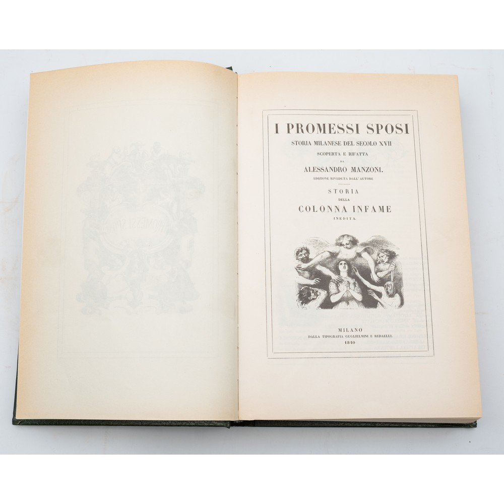 I PROMESSI SPOSI: STORIA MILANESE DEL SECOLO XVII SCOPERTA E RIFATTA DA ALESSANDRO MANZONI. STORIA DELLA COLONNA INFAME INEDITA, riproduzione facsimile dell'edizione Milano, dalla tipografia Guglielmini e Redaelli, 1840. In 4°. Edizione realizzata nel 1985 per il bicentenario della nascita di Alessandro Manzoni in tiratura limitata dalla casa editrice Velar. Tela con fregi in oro. Pp. 864.