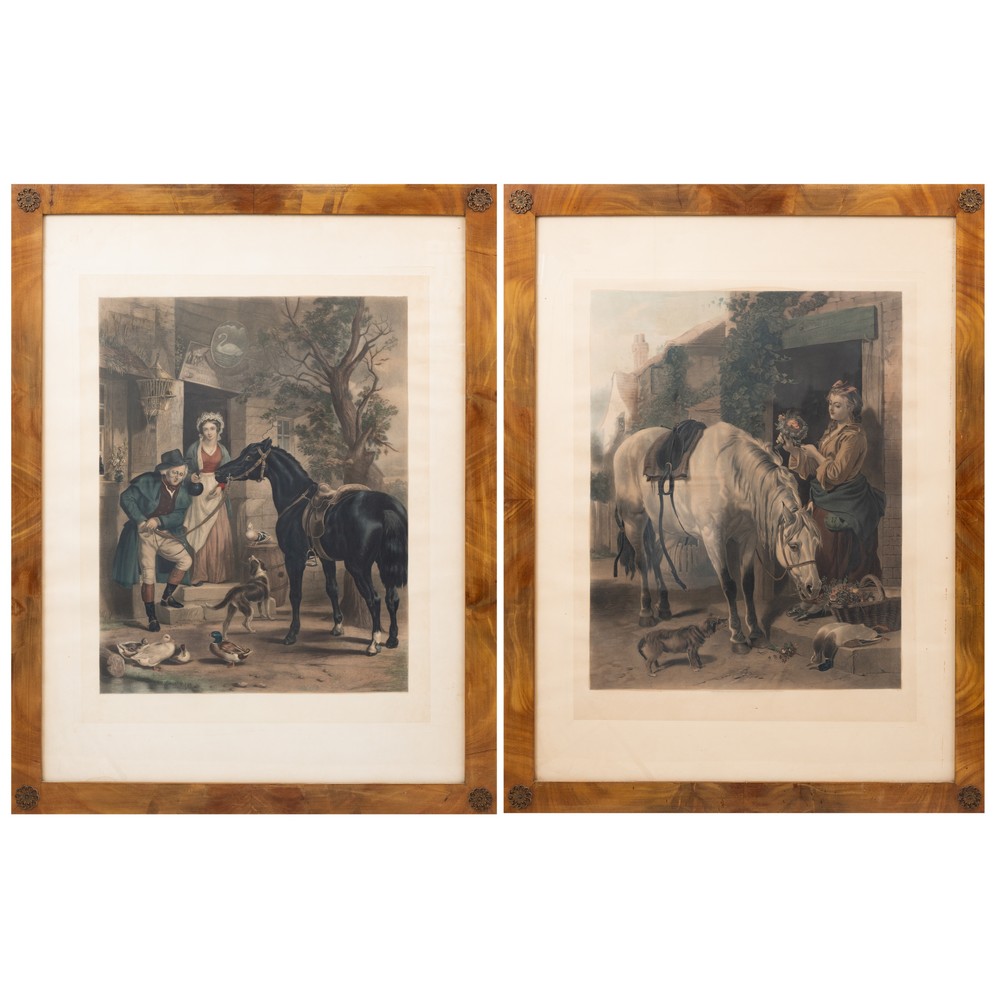COPPIA DI STAMPE DEI PRIMI DEL '900, Figure con cavallo