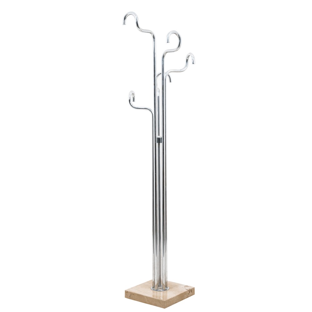 Attaccapanni a cinque bracci in acciaio con base in marmo.