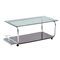 Tavolino da salotto tubolare cromato e piano in vetro fumè, piano sottostante in legno di mogano.