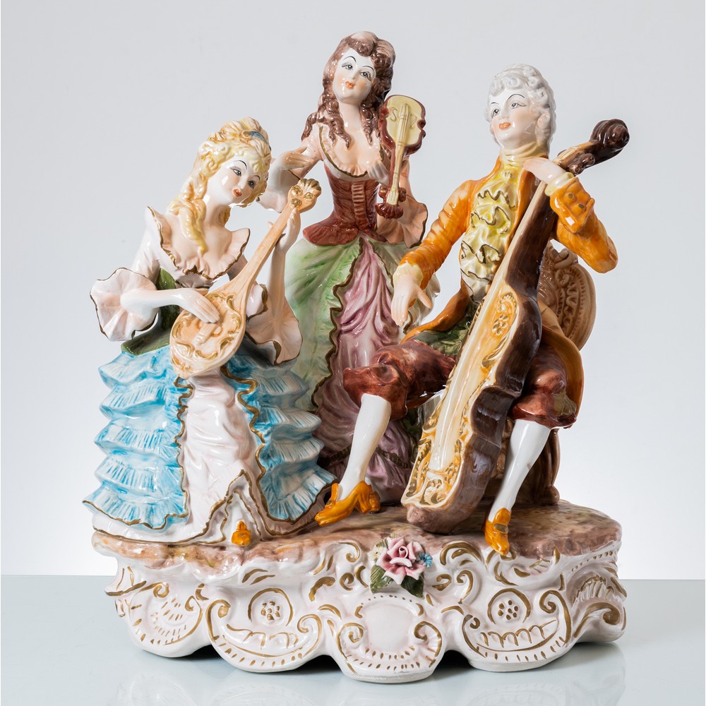 Grande gruppo in porcellana policroma raffigurante "Il concertino" (usure).