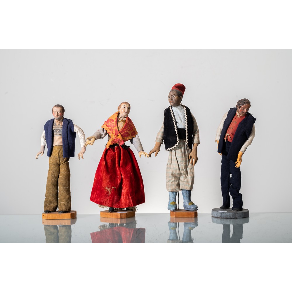 Quattro sculture in terracotta policroma raffiguranti "Personaggi da presepe" (restauri).