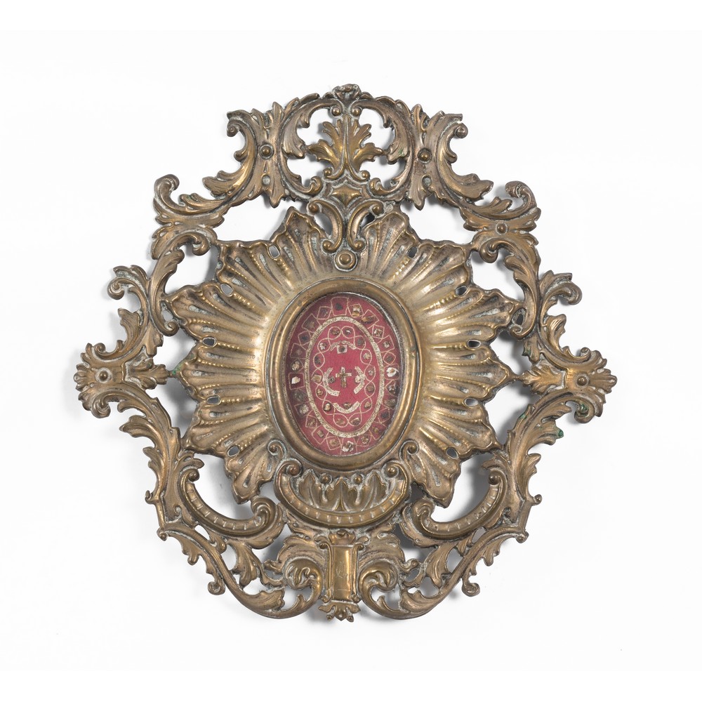Portareliquie in metallo lavorato.