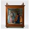Sculture in terracotta policroma raffigurante "Sacra Famiglia" entro teca in legno di noce.