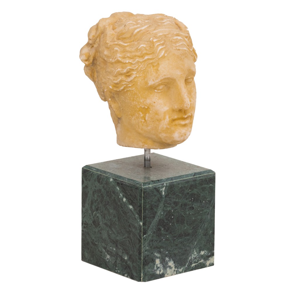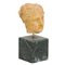 Scultura in marmo bianco raffigurante "Volto femminile", base non coeva in marmo verde delle Alpi.