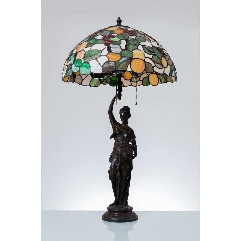 Lampada da tavolo tipologia Tiffany, base in bronzo raffigurante "Figura femminile".
