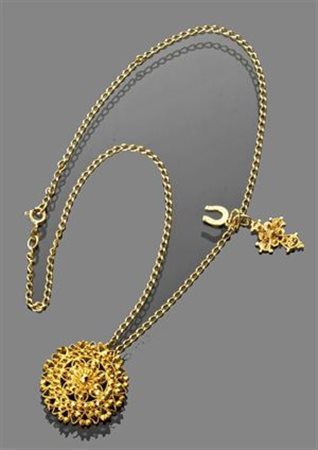 COLLANA Collana in oro giallo con 3 pendenti di varia forma Peso gr 25,40 Yellow gold necklace with 3 pendants of various shapes Weight 25.40 gr