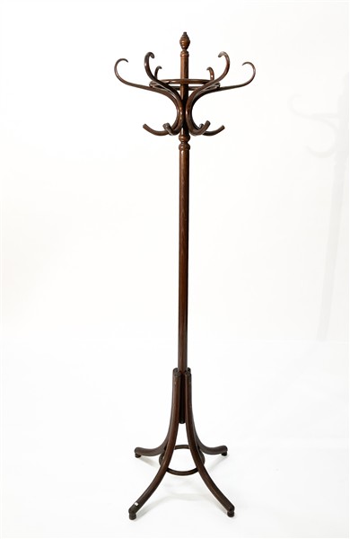 Attaccapanni in faggio curvato, etichetta sotto la base "LIGNA MADE IN CZECHOSLOVAKIA". (h cm 198) (difetti)