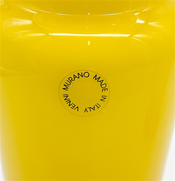 Venini Vaso della serie "Opalini" in vetro soffiato incamiciato giallo e lattimo