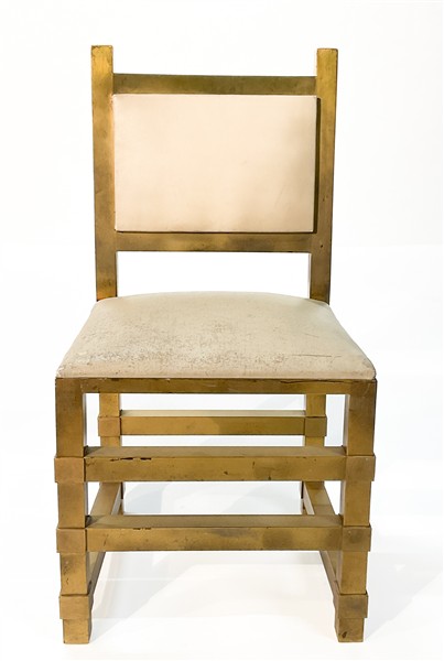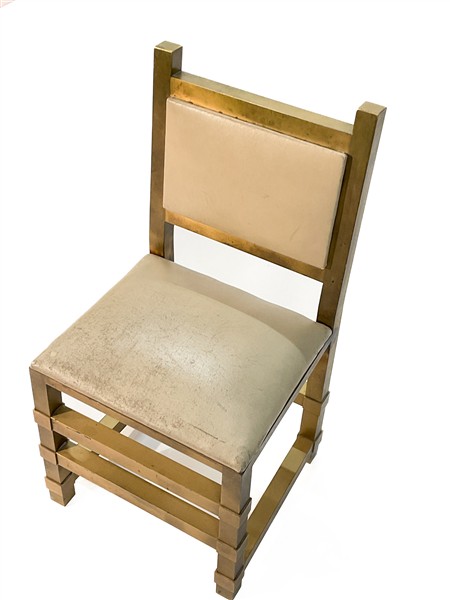 Sedia in ottone e vinilpelle bianca. Italia, anni '70. (difetti)