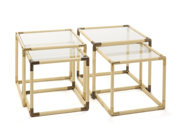 Tommaso Barbi (Attribuito) Coppia di tavolini a nido con angolari in ottone luci