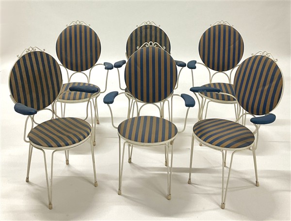 Gruppo di sei poltrone in ferro laccato. Italia, anni '40/'50. (difetti)
